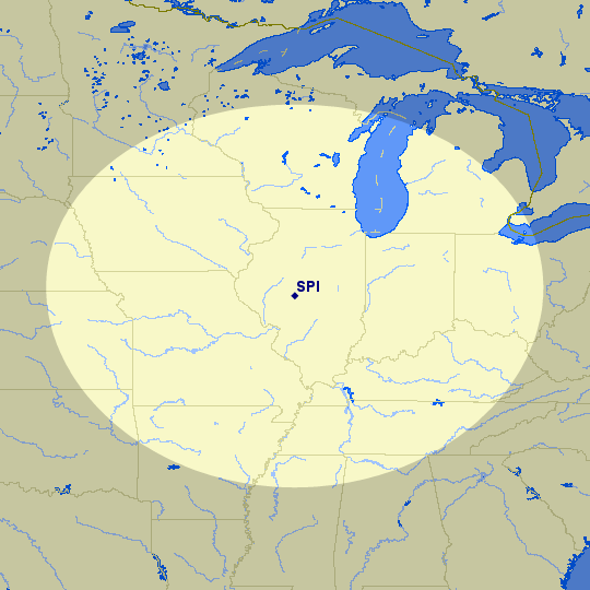 Cities like Springfield should be cultivating multiple routes to multiple hubs/focus cities near them. They should seek to offer broad based links to their entire region instead of a link to one part of their region (Chicago) and another link to an area entirely outside of their economic sphere (Dallas). Using Springfield as an example and defining their “region” as being roughly 350nm diameter, they could target links to Chicago, Milwaukee, Detroit, Indianapolis, St. Louis, Kansas City, Minneapolis / St. Paul, Memphis, Nashville and even Cincinatti and Columbus.